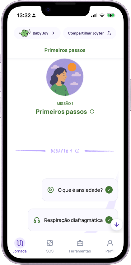 Diante desse cenário, os sócios decidiram dar um passo além: criar um aplicativo dedicado exclusivamente à ansiedade. Mais do que oferecer diálogos isolados, a proposta seria construir uma jornada estruturada, na qual o usuário pudesse avançar de conteúdo em conteúdo, sendo conduzido de forma didática e terapêutica. Essa jornada incluiria psicoeducação e técnicas psicológicas aplicadas, sempre em linguagem acessível e sensível. Assim nasceu o conceito do Joyter.